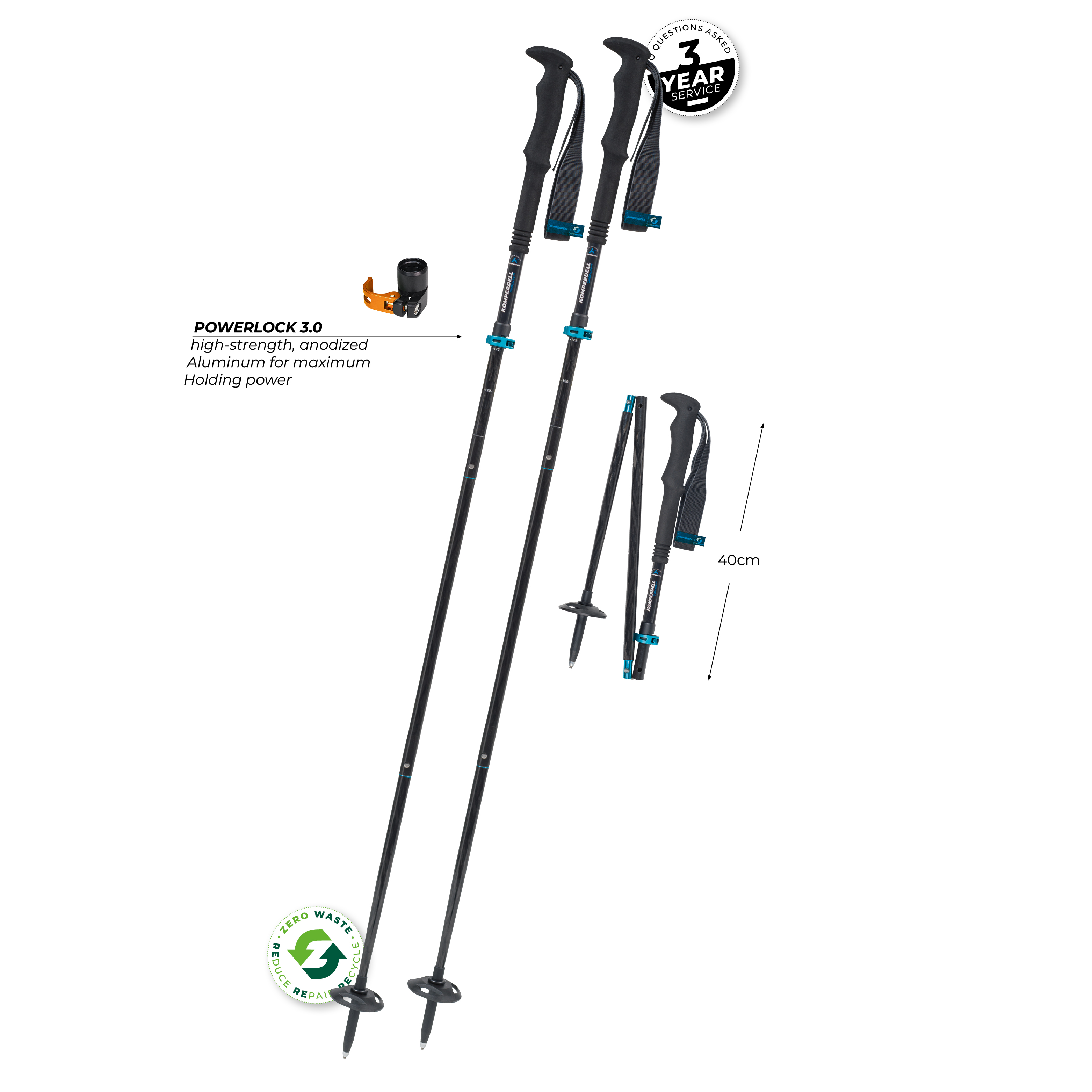 Dry and clean your poles after usage. Always store your telescopic poles in the non-fixed setting! Never use lubricants on or in the shaft or on the locking system! Attention: