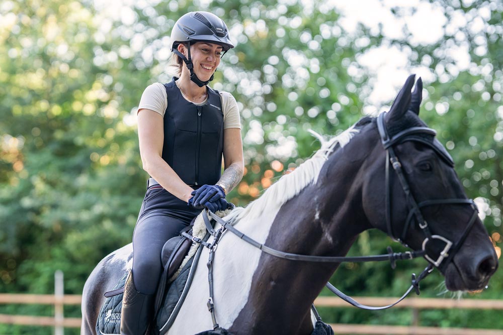 At Komperdell, we have set ourselves the goal of making horse riding a bit safer. While a helmet is part of most riders’ basic equipment, the rest of the body is often neglected when it comes to protection. Our many years of experience and our determination to constantly innovate have enabled us to create unique products. Our protector vests are unrivalled in terms of comfort and fit, but provides maximum safety. So how does it work? The multi-layer construction of the exceptionally soft foam guarantees that the equestrian back protector huddles perfectly against the body. When you put it on, the safety vest automatically adapts to your body and fits as though it was tailored throughout your ride. At the same time, the vest offers the ultimate in freedom of movement. Our equestrian safety vests are available for both men and women, and also for juniors.