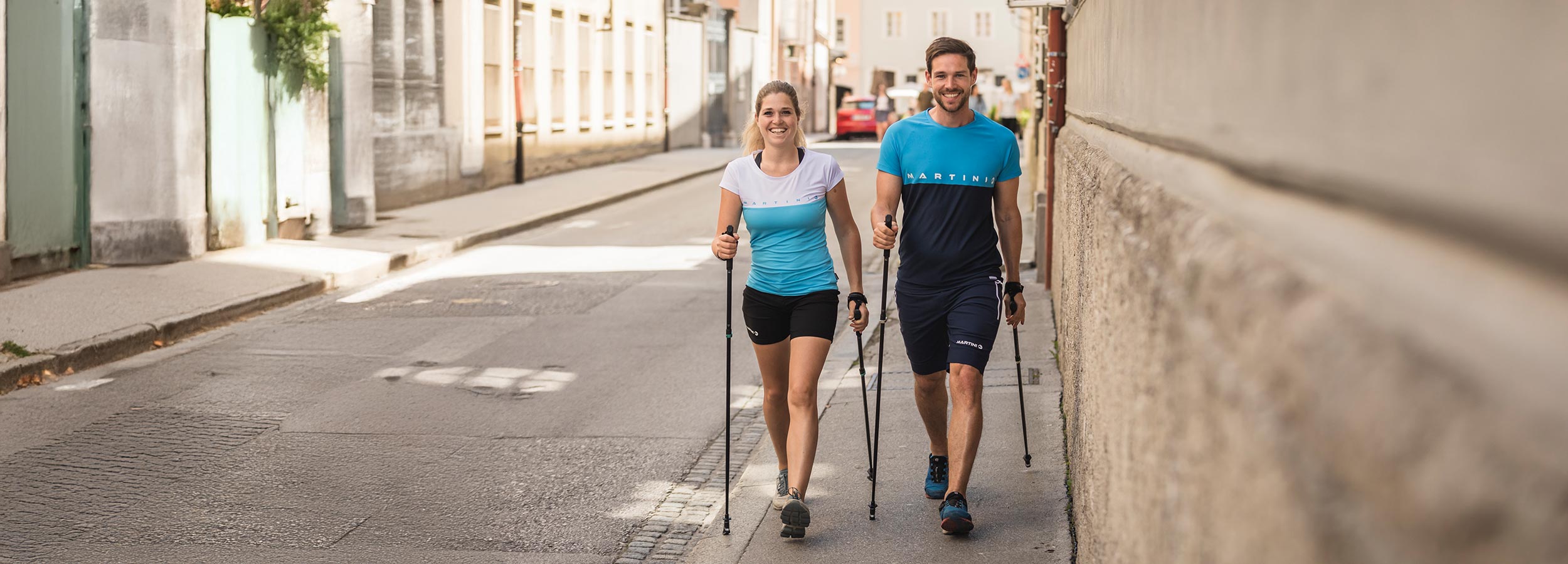 Length adjustable and robust Nordic walking pole made of aluminium with a lightweight grip.