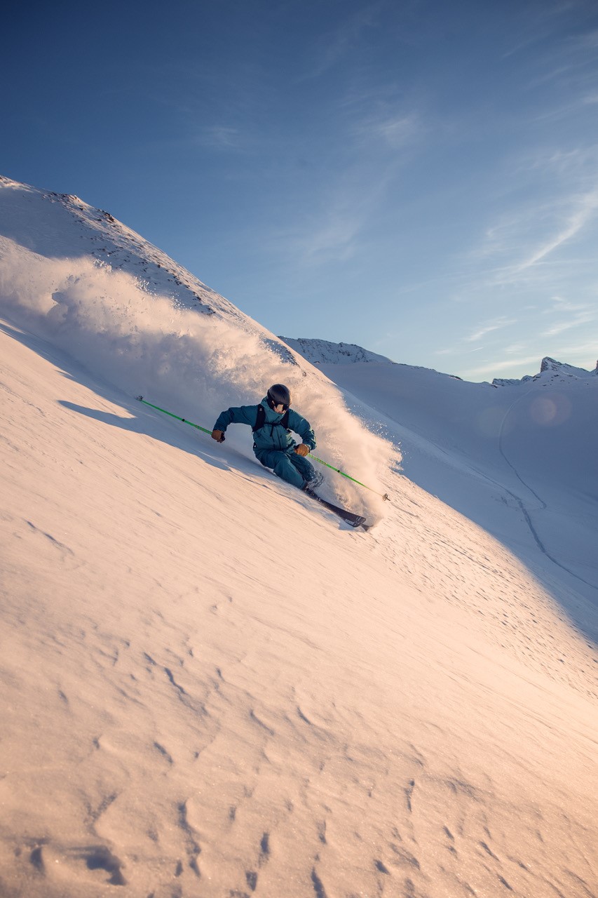 When ski touring and freeriding off-piste, I rely on the new Big Art Vario pole, which is super light and a real eye-catcher with its new colorful grip tapes!